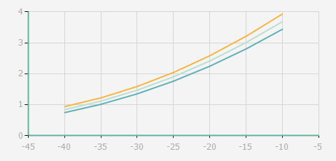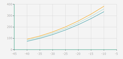 | 蒸發(fā)溫度 | 制冷量+/-5% | 能耗+/-5% | 現(xiàn)在能效+/-5% | 氣體流速+/-5% | 能效+/-7% | ||||