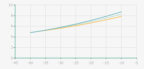 | 蒸發(fā)溫度 | 制冷量+/-5% | 能耗+/-5% | 現(xiàn)在能效+/-5% | 氣體流速+/-5% | 能效+/-7% | ||||