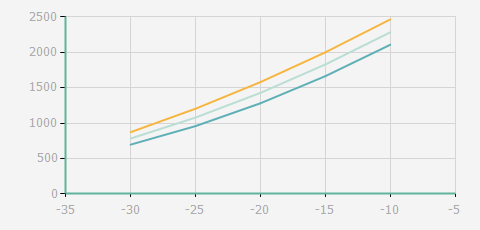 | 蒸發(fā)溫度 | 制冷量+/-5% | 能耗+/-5% | 現在能效+/-5% | 氣體流速+/-5% | 能效+/-7% | ||||